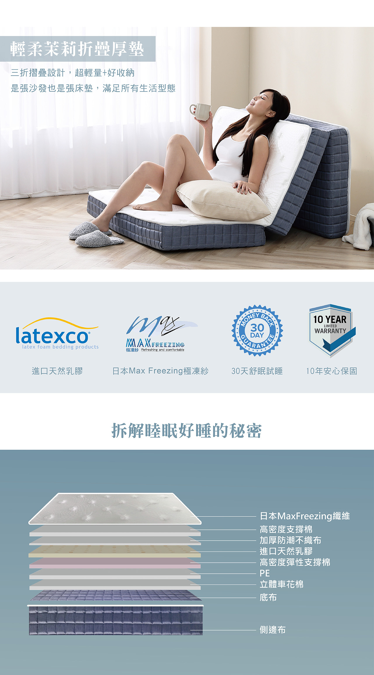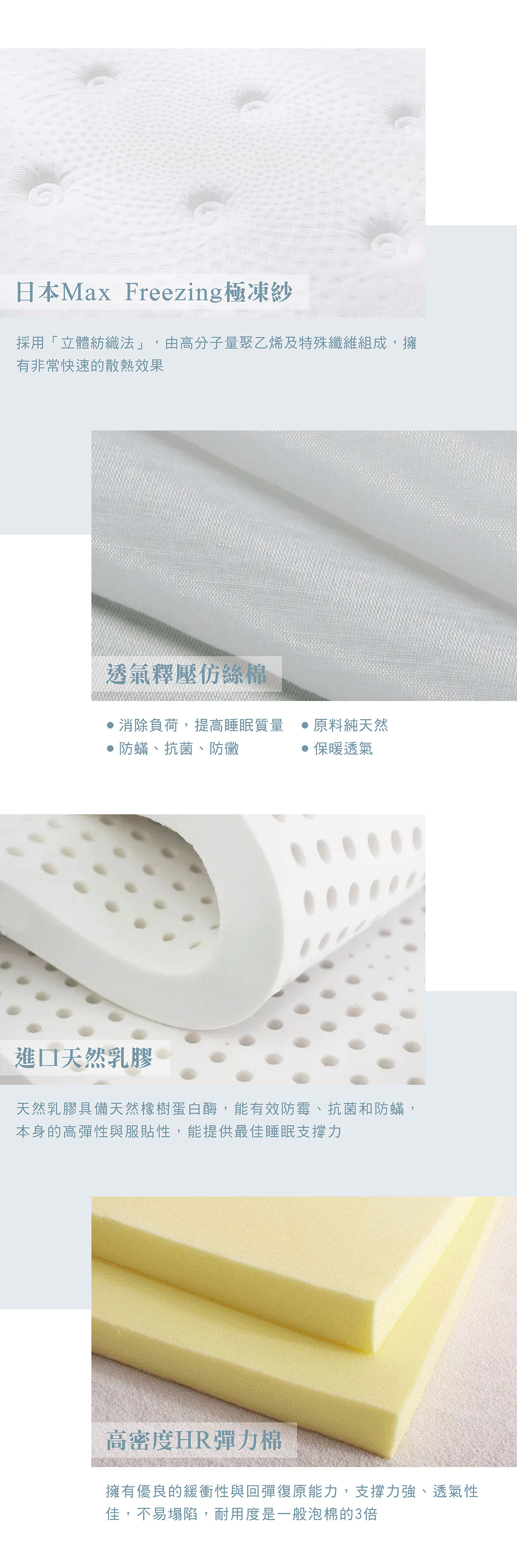 ˙ 天然乳膠,防蟎抗菌